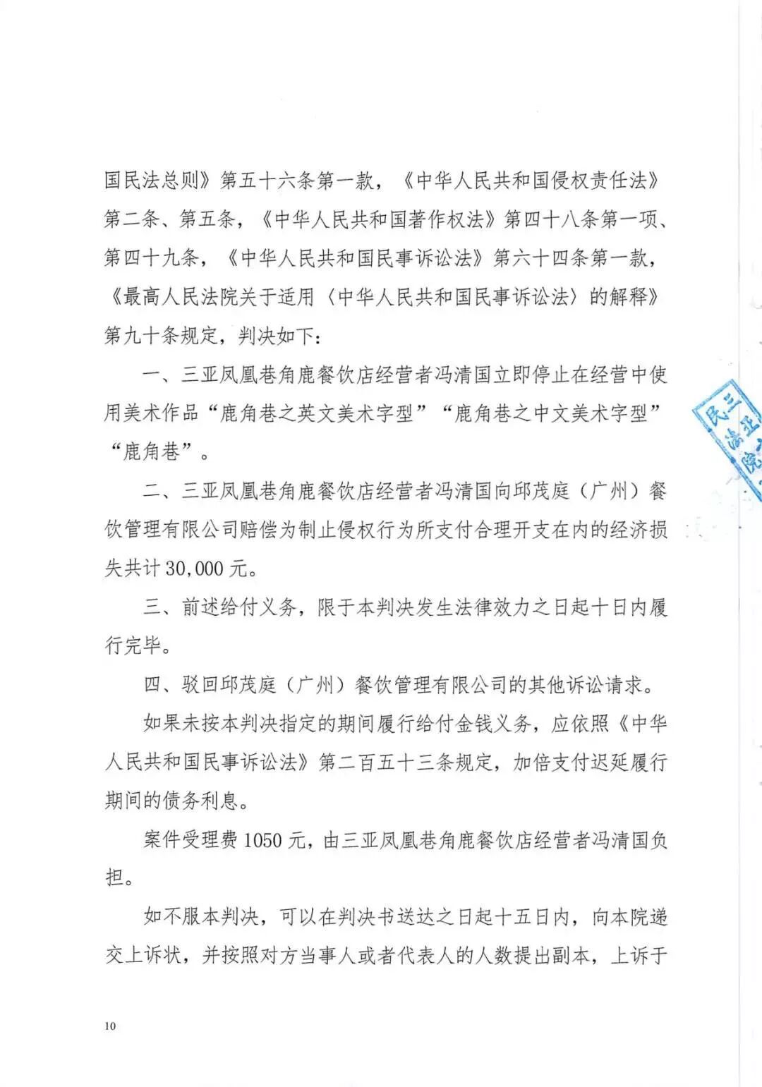 终于等到“鹿角巷”维权案的判决书,