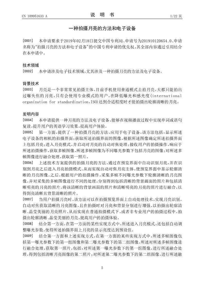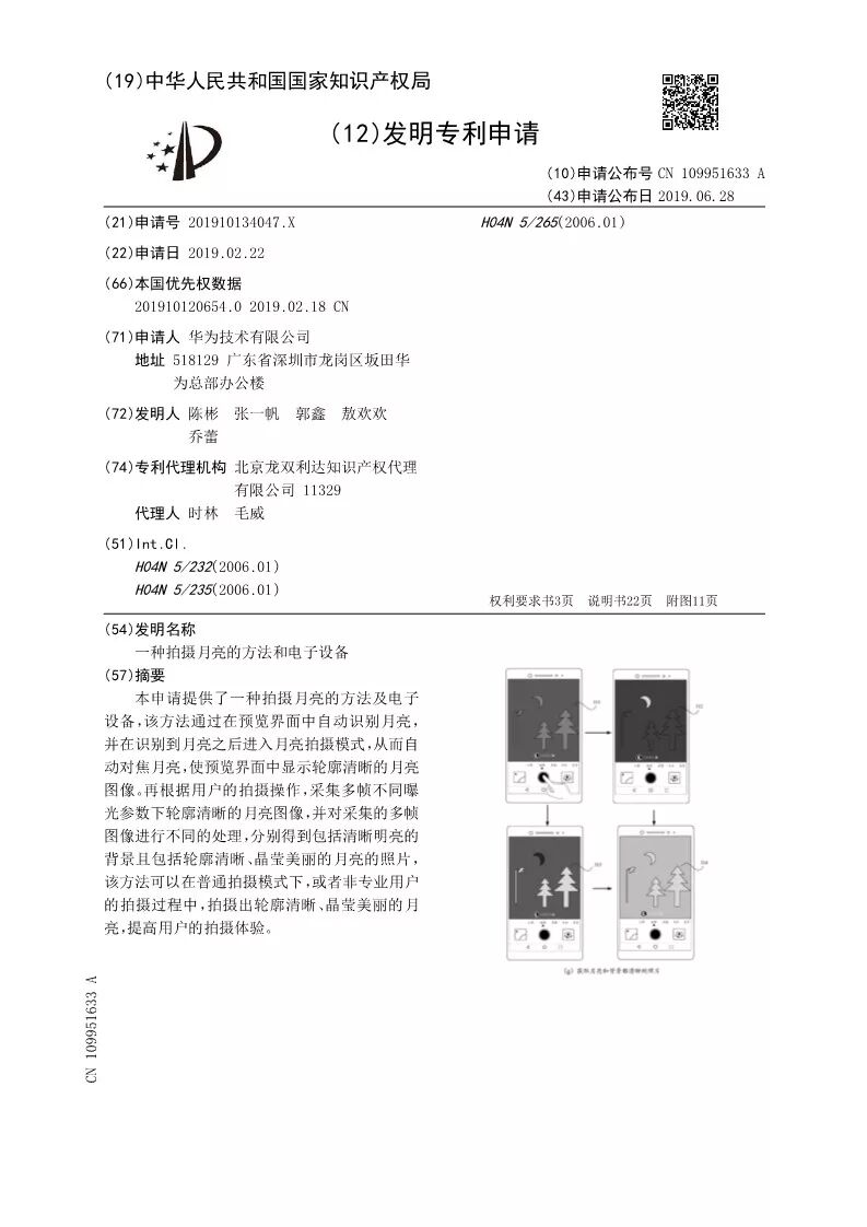 近日,国家知识产权局公布了华为一项专利,该专利名为“一种拍摄月亮的方法和电子设备”。原来,华为早就把这个技术申请了发明专利!