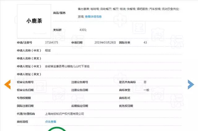 没想才过了三天,有人就立马跟着提交申请了43类“小鹿茶”商标的注册!