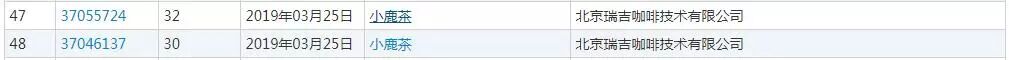 瑞幸在3月份的时候注册30、32类“小鹿茶”商标,其余暂时没有注册!