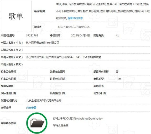 据查,网易云音乐2012年和2014年申请注册的6件“歌单”商标均处于“撤销/无效宣告申请审查中”。而2019年4月3号新申请的商标则还处于“实质审查阶段”。