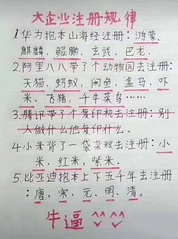 这些大企业的商标除了华为的《山海经》比较与众不同,其他的也不见得多有显著性,他们取胜的关键是产品。产品真正满足了消费者的需求,名字也就增光添彩了。其次,商标注册以后要用起来,否则可能导致商标易主。
