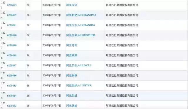 而“阿里巴巴“商标,同时递交的还有”阿里爸爸“”阿里爷爷“”阿里奶奶“”阿里哥哥“”阿里伯伯“”阿里宝贝“”阿里宝宝“等等。