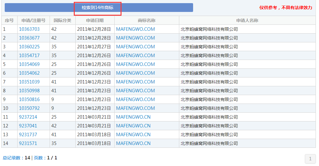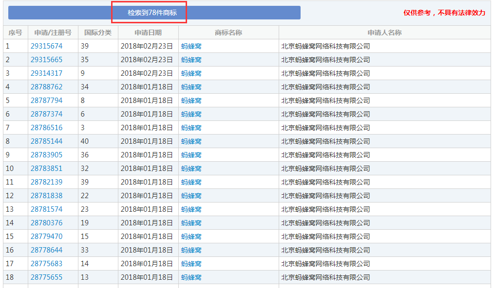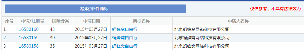 “蚂蜂窝”部分商标