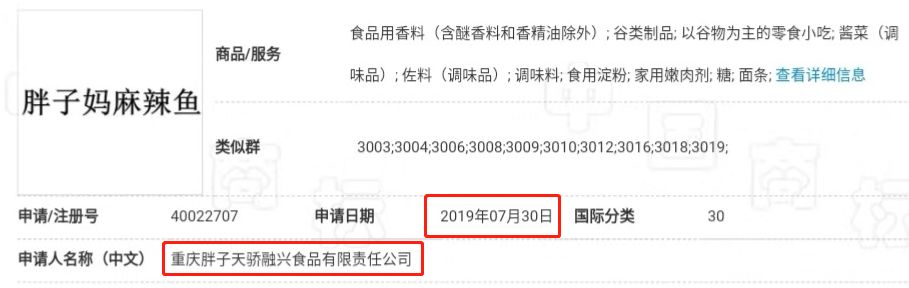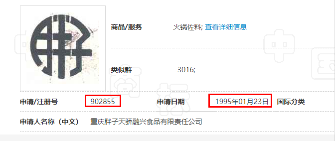 早在1995年,重庆一家专做麻辣鱼佐料的食品公司-重庆胖子天骄融兴食品有限责任公司(下称胖子公司)向国家商标局提交注册了一枚“胖子”商标,该商标在1996年被核准注册,可谓历史悠久,在当地也非常有名,还曾获得过重庆市老字号、重庆市著名商标的荣誉。