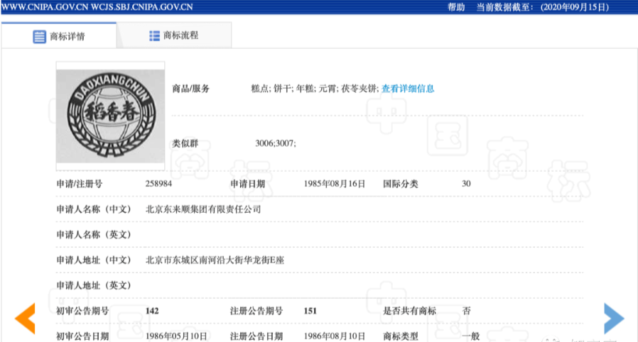 2004年9月7日,引证商标一、二转让至东来顺集团名下。