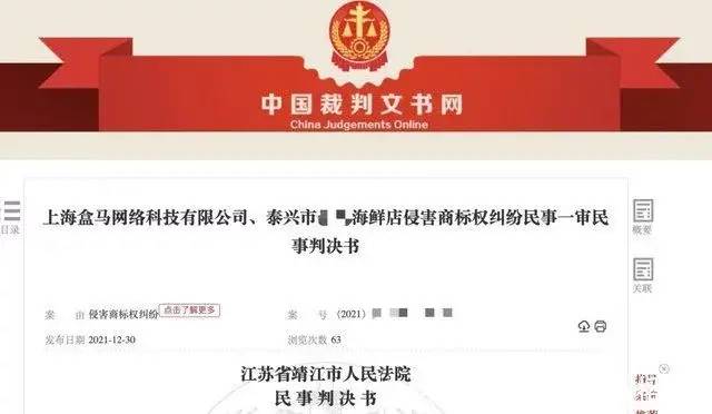 据判决书显示,该案被告原名泰兴市盒马生鲜店,成立于2020年3月8日,于2021年8月16日更名,为个体工商户,经营范围包括食品经营、烟草制品零售、水产品批发、水产品零售。