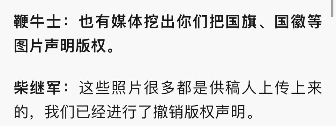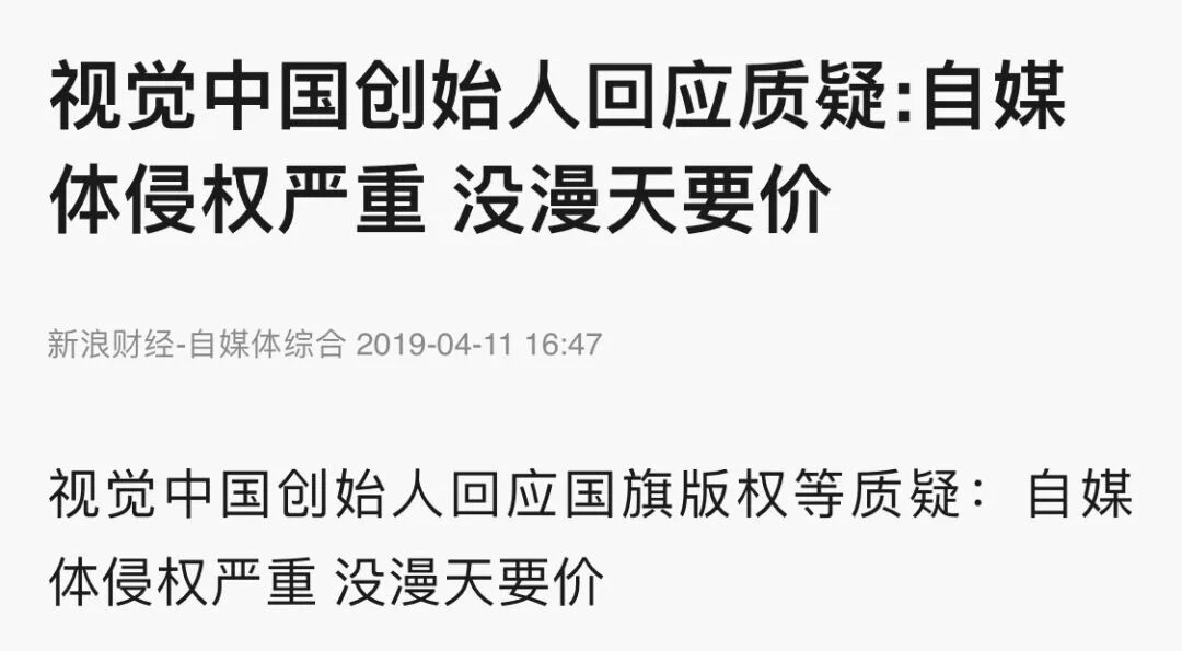 就在刚刚,根据新浪财经-自媒体综合《视觉中国创始人回应质疑:自媒体侵权严重,没漫天要价》的报道,视觉中国创始人柴继军回应称,这些照片很多都是供稿人上传上来的,已经进行撤销版权声明。